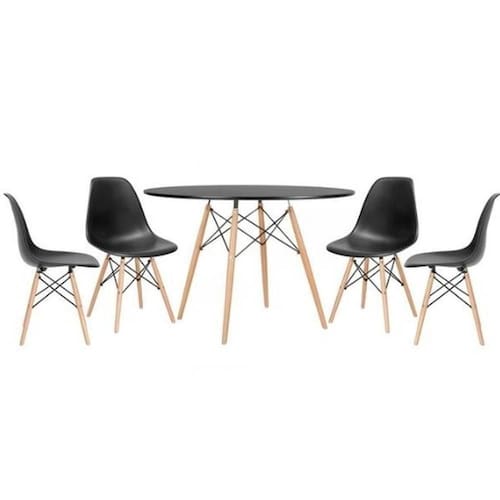 Conjunto de Mesa de Jantar Eames Eiffel Redonda 110cm Tampo de Madeira Preto com 4 Cadeiras Pretas