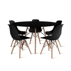 O Conjunto de Mesa de Jantar Eames Eiffel é a combinação perfeita de elegância e funcionalidade. Com uma mesa redonda de 110cm de diâmetro e tampo em MDF preto, ele traz um toque de sofisticação e luminosidade para sua sala de jantar. A base da mesa e das 5 cadeiras Eiffel são em madeira maciça, garantindo durabilidade e resistência. As cadeiras, com assento em polipropileno, oferecem conforto e um design atemporal que se adapta facilmente a qualquer ambiente.