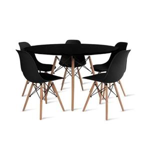 O Conjunto de Mesa de Jantar Eames Eiffel é a combinação perfeita de elegância e funcionalidade. Com uma mesa redonda de 120cm de diâmetro e tampo em MDF preto, ele traz um toque de sofisticação e luminosidade para sua sala de jantar. A base da mesa e das 5 cadeiras Eiffel são em madeira maciça, garantindo durabilidade e resistência. As cadeiras, com assento em polipropileno, oferecem conforto e um design atemporal que se adapta facilmente a qualquer ambiente.