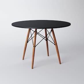 Conjunto de Mesa de Jantar Eames Eiffel Redonda 90 cm Tampo de Madeira Preto com 4 Cadeiras Pretas P