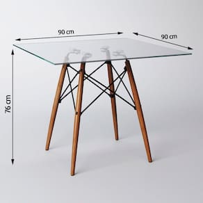 Conjunto De Mesa De Jantar Eames Eiffel Quadrada 90cm Tampo De Vidro Com 4 Cadeiras PretasO Jogo de Mesa 4 Cadeiras Eames Eiffel se destaca pelo design moderno e sofisticado. A Cadeira é confeccionada em policarbonato, sua base é em Madeira maciça, o que confere total resistência e conforto, o tampo da mesa é confeccionado em vidro, sua base é em Madeira maciça. O Jogo de Mesa 4 Cadeiras Eames Eiffel da vida ao ambiente além de combinar com todos os tipos e cores de móveis.Tipo: ConjuntoModelo: Eames Eiffel Wood- DimensõesCadeiraCor: PretaAltura: 85 cmLargura: 47 cmProfundidade: 50 cmAssento x Chão: 45 cmContém: 04 cadeirasPeso máximo suportado: 120 KgMesaCor: VidroAltura: 76 cmLargura: 90 cmProfundidade: 90 cmObs: Imagens Meramente IlustrativaConjunto de Mesa de Jantar Eames Eiffel Quadrada 90cm Tampo de Vidro com 4 Cadeiras Pretas