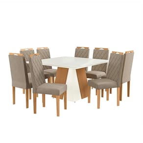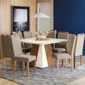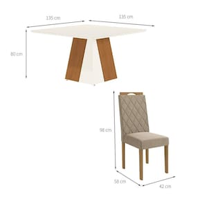 Que tal o Conjunto de Mesa e Cadeiras Dalia? Sua sala de jantar completa e receptiva pede o Conjunto Dalia na composição. Enquanto a mesa tem estrutura em MDP, promovendo a estabilidade necessária ao uso diário, as cadeiras contam com enchimento em espuma e revestimento em tecido macio - assim a comodidade é garantida desde o cafezinho da manhã até o jantar especial com os amigos. De visual que cria um lar-style sofisticado, as peças têm cor neutra e acabamento amadeirado, o combo perfeito para combinar com os outros móveis do seu cantinho.
