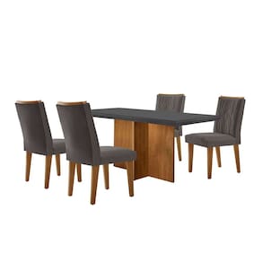que tal o conjunto de mesa berlim com cadeiras alegra? conquistar sua sala de jantar dos sonhos vai ficar fácil com o conjunto berlim e alegra. completo para o dia a dia, o kit une mesa espaçosa e cadeiras aconchegantes, tudo para promover o bem-estar necessário às refeições em família ou com amigos. além de muita funcionalidade, você também leva um design elegante e contemporâneo para o seu cantinho, graças à valorização do tom neutro e do acabamento amadeirado. ah, notou que a mesa tem aplicação de vidro no tampo? um charme extra para sua casa que ainda facilita a limpeza :) Marca: Modern