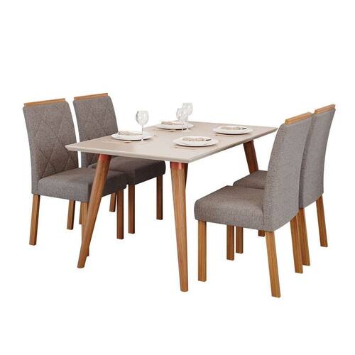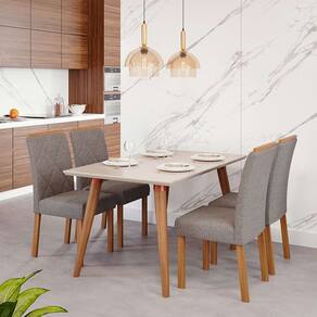 que tal o conjunto de mesa de jantar adele com cadeiras fernanda? com o conjunto adele e fernanda, sua sala de jantar será o cenário perfeito para momentos memoráveis. composto por uma mesa e 4 cadeiras estofadas em espuma e revestidas em tecido io, este kit proporciona conforto e pde para o seu dia a dia. a mesa, com seu design moderno, tem tampo com aplicação de vidro, adicionando um toque de elegância ao ambiente. por falar nisso, o visual sofisticado das peças é evidenciado pela valorização do tom amadeirado e a coloração neutra, tornando sua casa ainda mais encantadora e bonita. com esse conjunto, temos certeza que você e sua família irão partilhar ótimos momentos juntos ;) Marca: Modern