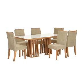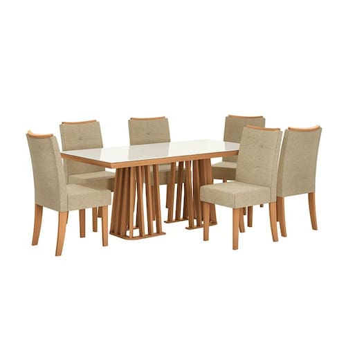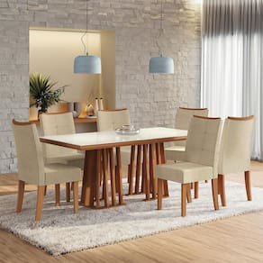 Que tal o Conjunto de Mesa Alteia e Cadeiras Elva? Sua sala de jantar completa e receptiva pede o Conjunto Alteia e Elva na composição. Enquanto a mesa tem estrutura em MDP, promovendo a estabilidade necessária ao uso diário, as cadeiras contam com enchimento em espuma e revestimento em tecido macio - assim a comodidade é garantida desde o cafezinho da manhã até o jantar especial com os amigos. De visual que cria um lar-style sofisticado, as peças têm cor neutra e acabamento amadeirado, o combo perfeito para combinar com os outros móveis do seu cantinho.