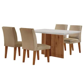 conjunto de mesa de jantar retangular com tampo de vidro off white berlim e 4 cadeiras bélgica linho bege e imbuia - Marrom