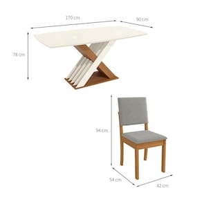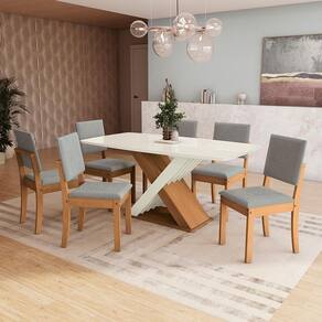 Que tal o Conjunto de Mesa Graviola e Cadeiras Luna? Sua sala de jantar completa e receptiva pede o Conjunto Graviola e Luna na composição. Enquanto a mesa tem estrutura em MDP, promovendo a estabilidade necessária ao uso diário, as cadeiras contam com enchimento em espuma e revestimento em tecido macio - assim a comodidade é garantida desde o cafezinho da manhã até o jantar especial com os amigos. De visual que cria um lar-style sofisticado, as peças têm cor neutra e acabamento amadeirado, o combo perfeito para combinar com os outros móveis do seu cantinho.