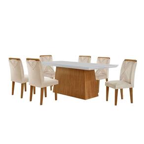 que tal o conjunto de mesa luna com cadeiras italia? conquistar sua sala de jantar dos sonhos vai ficar fácil com o conjunto luna e italia. completo para o dia a dia, o kit une mesa espaçosa e cadeiras aconchegantes, tudo para promover o bem-estar necessário às refeições em família ou com amigos. além de muita funcionalidade, você também leva um design elegante e contemporâneo para o seu cantinho, graças à valorização do tom neutro e do acabamento amadeirado. ah, notou que a mesa tem aplicação de vidro no tampo? um charme extra para sua casa que ainda facilita a limpeza :) Marca: Modern