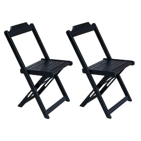 Conjunto De Mesa Dobravel Com 2 Cadeiras De Madeira 70x70 - Preto - Cor: Preto