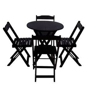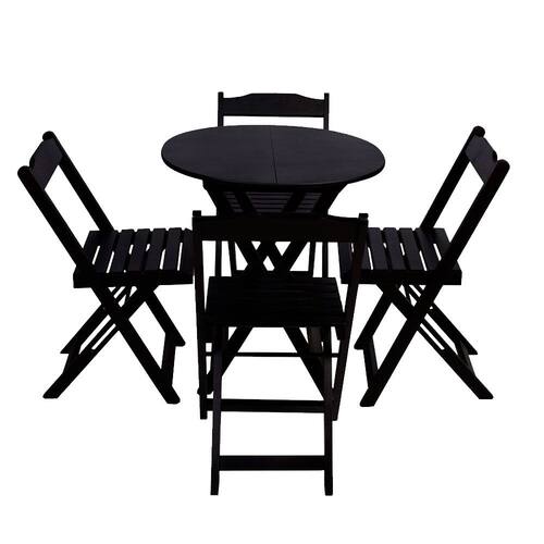 Conjunto De Mesa Dobravel Com 4 Cadeiras Tampo Redondo 70x70 Preto é ideal para bares, restaurantes, estabelecimentos, áreas de lazer e tambem para sua casa. Feito em madeira maciça, tornando resistentes e duráveis. Seu design permite que seja encaixado em qualquer ambiente, trazendo um toque a mais para seu estabelecimento. Além de sua durabilidade, o que lhe trará conforto para servir seus clientes. Por ser dobrável torna-se mais fácil guardar, manusear e limpar o produto. Atenção: EVITE USAR PRODUTOS ABRASIVOS E QUíMICOS PARA LIMPEZA DO PRODUTO, aconselha-se o uso de pano umedecido para melhor conservação; mantenha o produto fora de chuva e sol constantes