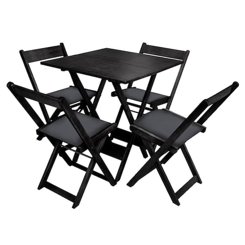 Conjunto de Mesa Dobrável de Madeira 70x70 com 4 Cadeiras Preto Estofado Preto