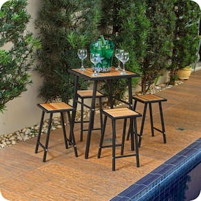 Conteúdo do kit: 1 mesa premium e 4 bancos Material da estrutura: aço Material do assento: madeira Acabamento: pintura eletrostática epóxi com proteção anti-ferrugem de fosfatização Cor: preto fosco Estrutura da banqueta e mesa: tubo quadrado Medida do tubo banqueta: 20x20mm Medida do tubo mesa: 25x25mm.