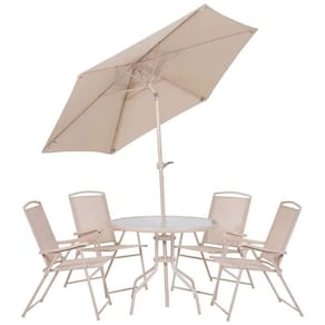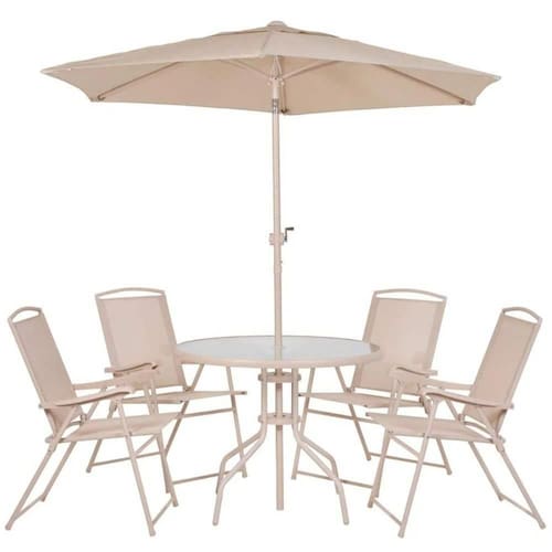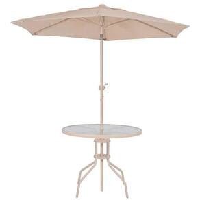 Conjunto de Mesa e Cadeira e Guarda Sol para Jardim em Aço Bege Malibu MOR