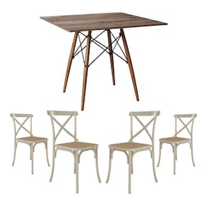 Conjunto De Mesa Eiffel Quadrado Tampo De Madeira 90cm Amêndoa Com 4 Cadeiras Katrina Off White Asse
