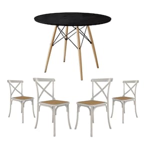 Conjunto De Mesa Eiffel Redondo Tampo De Madeira 110cm Preto Com 4 Cadeiras Katrina Branca Assento B