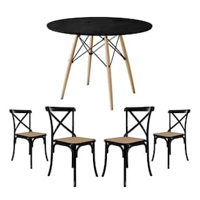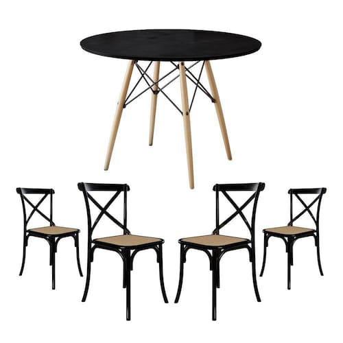Conjunto De Mesa Eiffel Redondo Tampo De Madeira 110cm Preto Com 4 Cadeiras Katrina Preto Assento Be