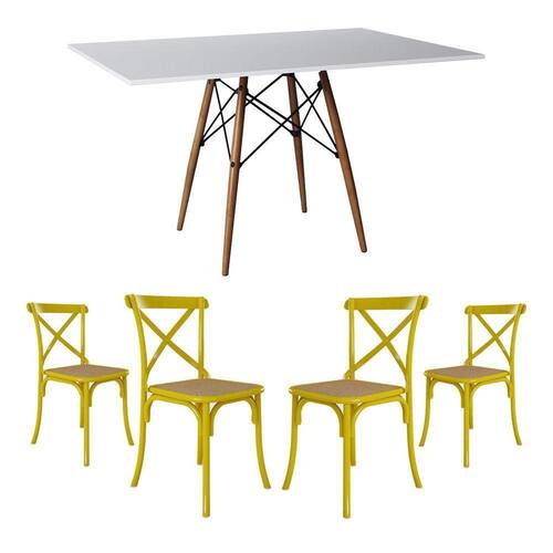 Conjunto De Mesa Eiffel Retangular Tampo De Madeira 120x75cm Branco Com 4 Cadeiras Katrina Amarela A
