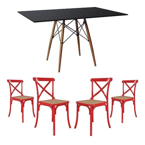 Conjunto De Mesa Eiffel Retangular Tampo De Madeira 120x75cm Preto Com 4 Cadeiras Katrina Vermelha A