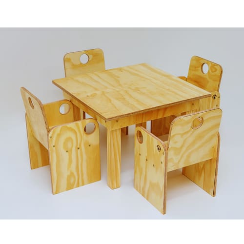 Fabricado em compensado de pinus com pintura em verniz atóxico, priorizou-se manter a característica da cor da madeira (natural), como forma de neutralizar os diversos espaços em que pode ser inserida. Ideal para residências e espaços escolares.