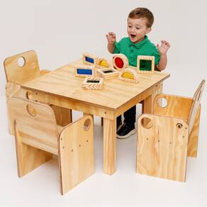 O Conjunto de Mesa Infantil (40 cm de altura) com 4 Cadeiras Baby possui inspiração no Método Montessoriano, cuja premissa é oportunizar um mobiliário à altura da criança, um ambiente preparado para que ela faça as refeições, atividades, ou brincadeiras.