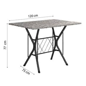 O Conjunto de Mesa Itália New com 4 lugares possui design moderno que se adapta a qualquer ambiente. Contém tampo retangular em granito resistente a altas temperaturas, e as cadeiras são revestidas em tecido corino de fácil limpeza. Ainda conta com base da mesa e cadeiras em aço, garantindo resistência e durabilidade.