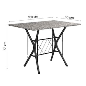 MARCA: Artefamol MODELO: Conjunto de Mesa Itália New 1,00m com 4 Cadeiras COR: Dark/Granito MATERIAL: Base e Cadeira de Aço TAMPO MESA: Granito ASSENTO: Tecido corino PESO MESA: 64,8kg (Base + Tampo) PESO CADEIRA: 3,83kg CADEIRAS SUPORTAM: 100kg MESA SUPORTA: 100kg PÉS: Sapatas de borracha ITENS INCLUSOS: 1 Base, 1 Tampo e 4 Cadeiras Montagem não inclusa. Entregamos até a porta de entrada da casa do cliente ou até a portaria do condomínio.