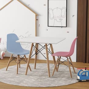 CONJUNTO DE MESA EAMES EIFFEL MADEIRA INFANTIL 68CM QUADRADO BRANCO 1 CADEIRA AZUL 1 CADEIRA ROSA O Conjunto Mesa Eames Eiffel com Cadeiras Eiffel Infantil, pensado especialmente no conforto e bem-estar do seu pequeno, unimos modernidade, conforto e qualidade. combinaçãão perfeita para os pequenos soltarem a imaginaçãão. CARACTERISTICAS Tipo: Conjunto Modelo: Eiffel Infantil Base: Madeira DIMENSÕES DO PRODUTO Cadeira Altura: 56cm Largura: 29cm Profundidade: 29cm Assento x Chão:33cm Cor: Azul/ Rosa DIMENSÕES DO PRODUTO Mesa Altura: 50 Largura: 68cm Profundidade: 68cm Cor: Branco Obs: Imagens Meramente Ilustrativa