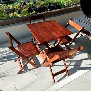 Transforme seu espaço com este kit completo de mesa e 4 cadeiras dobráveis em madeira pinus natural. Ideal para quem busca funcionalidade, charme rústico e economia de espaço, o conjunto é perfeito para ambientes internos e externos, como varandas, áreas gourmet, cozinhas compactas, bares, eventos ou até mesmo camping.