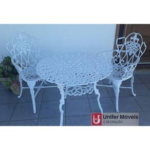 Com o conceito de prático, leve e resistente, o Conjunto Floral Com 2 Poltronas e Mesa Alta conta com a estrutura em alumínio fundido e com um lindo designer que combina tanto com o seu jardim quanto sua varanda ou até mesmo sua sala (Porque não!), para ambientes leves e rústicos. Com a "Pintura Eletrostática", que caracteriza-se pela elevada resistência à corrosão, ferrugem e oxidação podendo ser exposto a sol e chuva, e sem falar na praticidade para sua limpeza tornando seu produto com aquele aspecto de novo por muito mais tempo.