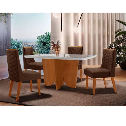 Conjunto de Mesa para Sala de Jantar TP120 Nevada 4 Cadeiras Rufato