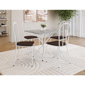 Que tal o Conjunto de Mesa com Cadeiras Léia? Deixar sua cozinha acolhedora e confortável é simples, basta contar com o Conjunto Léia. Dispondo de ótimo espaço de tampo, a mesa tem tamanho ideal para acomodar as 4 cadeiras e deixar todo mundo à vontade no momento das refeições. Já o design deixa em destaque as cores atemporais, que são simples de combinar com todos os estilos de decoração- o tampo em granito ainda leva um toque clássico ao seu lar-style. Marca: Não Informado