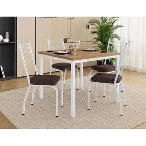Conjunto de Mesa Quadrada com Tampo MDP e 4 Cadeiras Adriana Revestimento Sintético Cacau e Branco