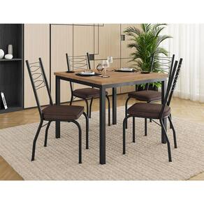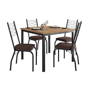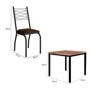 Conjunto de Mesa Quadrada com Tampo MDP e 4 Cadeiras Adriana Revestimento Sintético Marrom e Preto