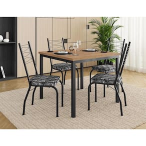 Que tal o Conjunto de Mesa com Cadeiras Adriana?O momento das refeições pode ser ainda mais especial com o Conjunto de Jantar Adriana, que é perfeito para transformar sua sala de jantar em um espaço elegante e funcional: enquanto o tampo amplo acomoda pratos, copos e travessas com facilidade, as cadeiras estofadas garantem conforto para até 4 pessoas, seja em jantares cotidianos ou ocasiões especiais. O charme fica completo com a paleta de cores harmônica, que integra as peças à decoração do ambiente com facilidade - com esse kit, você ganha um toque de bom gosto e aconchego que vai encantar seus convidados e valorizar a sua casa ;)