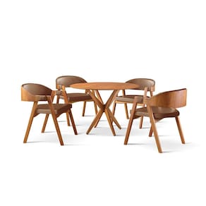 Conjunto de Mesa Redonda 100cm com 4 Cadeiras Gaia Marrom/Freijó