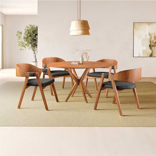 Ideal para receber a família e amigos, esse conjunto une beleza, durabilidade e aquele toque especial que só a Zurc Decor oferece. Medida da Mesa (A x L x P): 73,5 x 120 x 120 Peso da Mesa: 20 kg Mesa suporta até: 20 kg Acabamento da Cadeira/Banco: Verniz Natural Acabamento da Mesa: Verniz Ambiente Principal: Sala de Jantar Apoio para Braços Estofado: Não Cadeira/Banco estofada: Somente Assento Estofado Cadeira/Banco Estofada: Somente Assento Estofado Cadeira/Banco Suporta Até: 120.0000 Cadeira/Banco suporta até: 120 kg codigo_ean: 7900288281623 Configuração do Conjunto: Mesa com Cadeiras Cor: Preto/Freijó Cor da Base: Natural Cor das Cadeiras: Marrom Cor do Produto: Preto/Freijó Cor do Tampo: Natural Cor Secundária: Cinza De Canto (Canto Alemão): Não Design da Base: Em X Escala de Brilho: Brilhante Espessura do Tampo: 50 mm Estrutura do Assento: Eucalipto Estrutura do Encosto: Linho Formato do Tampo: Redondo Informações Complementares: Utilizar aspirador de pó, escova com cerdas macias ou limpeza a seco. Não utilizar produtos químicos, abrasivos ou limpeza a vapor. Evitar exposição prolongada ao sol. Itens Inclusos: 1 Mesa e 4 Cadeiras Linha ou Coleção: Luna Manual de Montagem e Instalação: https://product-hub-prd.madeiramadeira.com.br/650683244/documents/b56f0f94-7b6c-4c9c-8cc4-34f1614e54a63305838518817618692222015.pdf Marca: Zurc Decor Material da Base da Mesa: Madeira Maciça Material da Estrutura da Cadeira: Madeira Maciça Material do Tampo: Madeira Maciça Material Principal: Madeira Maciça Material Principal das Cadeiras/Bancos: Madeira Maciça Medida da Cadeira/Banco (A x L x P): 80 x 60 x 58 Medida do Tampo (L x C x E): 120 x 120 x 5 Mesa Dobrável: Não Mesa Extensível: Não Necessita Montagem: Não Origem do Produto: Nacional Peso da Cadeira/Banco: 15 kg Possui Apoio para Braços: Sim Possui Apoio Para os Pés: Não Possui Vidro: Não Quantidade de Cadeiras: 4 Quantidade de Lugares: 04 Recomendações de Uso, Manutenção e Limpeza: Utilizar aspirador de pó, escova com cerdas macias ou limpeza a seco. Não utilizar produtos químicos, abrasivos ou limpeza a vapor. Evitar exposição prolongada ao sol. Tipo de Encosto: Fixo Tipo de Madeira Maciça da Base da Mesa: Eucalipto Tipo de Madeira Maciça do Tampo: Eucalipto Marca: Não Informado