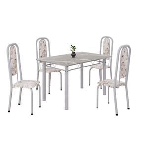 Este conjunto de mesa retangular e 4 cadeiras oferece estilo e praticidade. Com estrutura tubular em aço para estabilidade, o tampo em pedra granito adiciona sofisticação e resistência a riscos e manchas. As cadeiras combinam harmoniosamente com a mesa, garantindo conforto com estofamento. Ideal para diversos espaços, é perfeito para receber convidados ou desfrutar de refeições em família, criando um ambiente acolhedor e elegante. Medida da Mesa (A x L x P): 75,8 cm x 75 cm x 120 cm Peso da Mesa: 55,35 kg Mesa suporta até: 10 kg Acabamento da Cadeira/Banco: Pintura Texturizada Acabamento da Mesa: Polido Ambiente Principal: Sala de Jantar Cadeira/Banco estofada: Somente Assento Estofado Cadeira/Banco suporta até: 120 kg Complexidade da Montagem: Baixa: pode ser montado por uma pessoa sozinha Cor: Arabesco/ Mart Pérola Cor do Produto: Arabesco/ Mart Pérola Escala de Brilho: Semi-Brilho Espessura do Tampo: 15 mm Estrutura do Assento: Assento em MDP de 15mm c/ couríssimo. Itens Inclusos: 1 Mesa, 4 Cadeiras, Manual de Montagem e Ferragens. Manual de Montagem e Instalação: https://product-hub-prd.madeiramadeira.com.br/917877/documents/ab1e3a9f-e5e0-4e68-835c-5d6b755b91ca2042077524617181361367918.pdf Material da Base da Mesa: Aço Material da Estrutura da Cadeira: Aço Material do Tampo: Granito Medida da Cadeira/Banco (A x L x P): 108 cm x 37 cm x 40 cm Medida do Tampo (L x C x E): 75 cm x 120 cm x 1,5 cm Necessita Montagem: Sim Origem do Produto: Nacional Peso da Cadeira/Banco: 3,82 kg Possui Apoio Para os Pés: Não Quantidade de Lugares: 04 Recomendações de Uso, Manutenção e Limpeza: Usar um pano de tecido macio e seco, evitar detergentes, alvejantes e produtos químicos de limpeza; no tampo usar tecido macio levemente umedecido. Sistema de Montagem: Parafusos