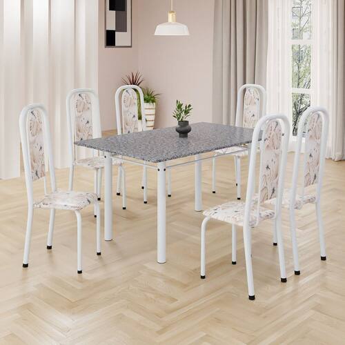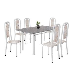 Conjunto de Mesa Retangular 140x75cm Tampo Granito Ocre 6 Cadeiras Lavínea Botanic Bege / Branco