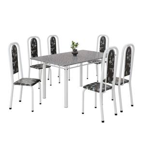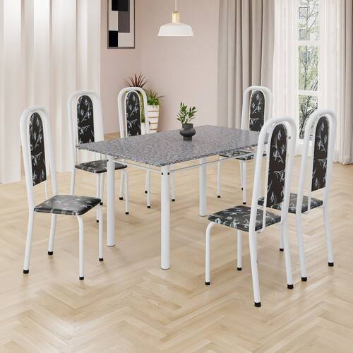 Conjunto de Mesa Retangular 140x75cm Tampo Granito Ocre 6 Cadeiras Lavínea Preto Floral/ Branco