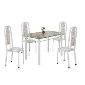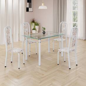 Este conjunto de mesa retangular e 4 cadeiras oferece estilo e praticidade. Com estrutura tubular em aço para estabilidade, o tampo em vidro adiciona sofisticação e resistência a riscos e manchas. As cadeiras combinam harmoniosamente com a mesa, garantindo conforto com estofamento. Ideal para diversos espaços, é perfeito para receber convidados ou desfrutar de refeições em família, criando um ambiente acolhedor e elegante. Medida da Mesa (A x L x P): 74,9 cm x 75 cm x 120 cm Peso da Mesa: 20,18 kg Mesa suporta até: 10 kg Acabamento da Cadeira/Banco: Pintura Texturizada Acabamento da Mesa: Polido Ambiente Principal: Sala de Jantar Cadeira/Banco estofada: Somente Assento Estofado Cadeira/Banco suporta até: 120 kg Complexidade da Montagem: Baixa: pode ser montado por uma pessoa sozinha Cor: Botanic Bege / Branco Cor do Produto: Botanic Bege / Branco Cor Secundária: Bege De Canto (Canto Alemão): Não Escala de Brilho: Semi-Brilho Espessura do Tampo: 6 mm Espessura do Vidro: 6 mm Estrutura do Assento: Assento em MDP de 15mm c/ couríssimo. Formato do Tampo: Retangular Itens Inclusos: 1 Mesa, 4 Cadeiras, Manual de Montagem e Ferragens. Manual de Montagem e Instalação: https://product-hub-prd.madeiramadeira.com.br/921318/documents/afafd4d5-dd64-41af-952e-b90f761ecab962040633524617181306017506.pdf Material da Base da Mesa: Aço Material da Estrutura da Cadeira: Aço Material do Tampo: Vidro Medida da Cadeira/Banco (A x L x P): 108 cm x 37 cm x 40 cm Medida do Tampo (L x C x E): 75 cm x 120 cm x 0,6 cm Mesa Extensível: Não Necessita Montagem: Sim Origem do Produto: Nacional Peso da Cadeira/Banco: 3,82 kg Possui Apoio Para os Pés: Não Quantidade de Lugares: 04 Recomendações de Uso, Manutenção e Limpeza: Usar um pano de tecido macio e seco, evitar detergentes, alvejantes e produtos químicos de limpeza; no tampo usar tecido macio levemente umedecido. Sistema de Montagem: Parafusos Vidro Temperado: Sim