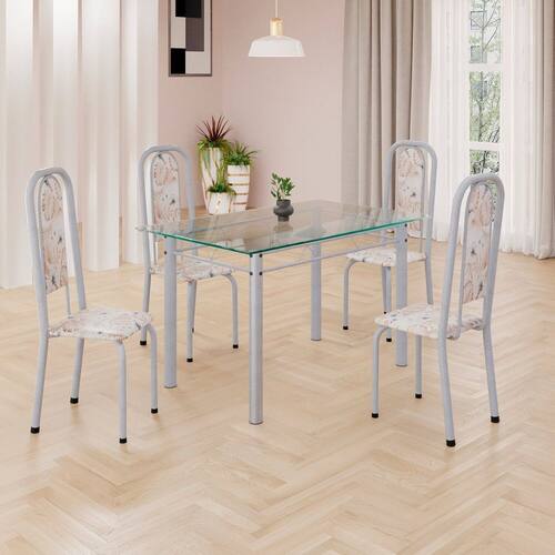 Este conjunto de mesa retangular e 4 cadeiras oferece estilo e praticidade. Com estrutura tubular em aço para estabilidade, o tampo em vidro adiciona sofisticação e resistência a riscos e manchas. As cadeiras combinam harmoniosamente com a mesa, garantindo conforto com estofamento. Ideal para diversos espaços, é perfeito para receber convidados ou desfrutar de refeições em família, criando um ambiente acolhedor e elegante. Medida da Mesa (A x L x P): 74,9 cm x 75 cm x 120 cm Peso da Mesa: 20,18 kg Mesa suporta até: 10 kg Acabamento da Cadeira/Banco: Pintura Texturizada Acabamento da Mesa: Polido Ambiente Principal: Sala de Jantar Cadeira/Banco estofada: Somente Assento Estofado Cadeira/Banco suporta até: 120 kg Complexidade da Montagem: Baixa: pode ser montado por uma pessoa sozinha Cor: Botanic Bege / Mart Pérola Cor do Produto: Botanic Bege / Mart Pérola Escala de Brilho: Semi-Brilho Espessura do Tampo: 6 mm Estrutura do Assento: Assento em MDP de 15mm c/ couríssimo. Itens Inclusos: 1 Mesa, 4 Cadeiras, Manual de Montagem e Ferragens. Manual de Montagem e Instalação: https://product-hub-prd.madeiramadeira.com.br/917893/documents/89a3bbe2-7847-4112-85f5-a7b9209b2a442040633524617181306017506.pdf Material da Base da Mesa: Aço Material da Estrutura da Cadeira: Aço Material do Tampo: Vidro Medida da Cadeira/Banco (A x L x P): 108 cm x 37 cm x 40 cm Medida do Tampo (L x C x E): 75 cm x 120 cm x 0,6 cm Necessita Montagem: Sim Origem do Produto: Nacional Peso da Cadeira/Banco: 3,82 kg Possui Apoio Para os Pés: Não Quantidade de Lugares: 04 Recomendações de Uso, Manutenção e Limpeza: Usar um pano de tecido macio e seco, evitar detergentes, alvejantes e produtos químicos de limpeza; no tampo usar tecido macio levemente umedecido. Sistema de Montagem: Parafusos Vidro Temperado: Sim