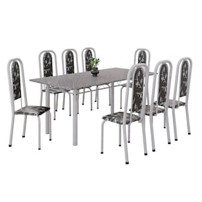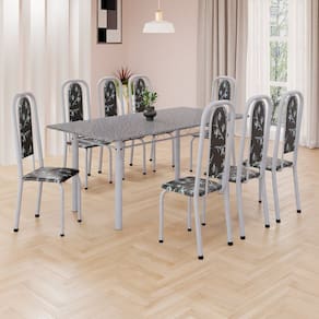 Este conjunto de mesa retangular e 8 cadeiras oferece estilo e praticidade. Com estrutura tubular em aço para estabilidade, o tampo em pedra granito adiciona sofisticação e resistência a riscos e manchas. As cadeiras combinam harmoniosamente com a mesa, garantindo conforto com estofamento. Ideal para diversos espaços, é perfeito para receber convidados ou desfrutar de refeições em família, criando um ambiente acolhedor e elegante.