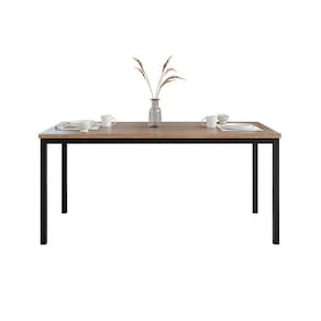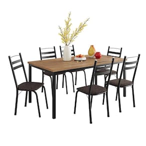 Conjunto de Mesa Retangular com Tampo de MDP Amadeirado e 6 Cadeiras Adriana III Revestimento Sintético Cacau e Preto
