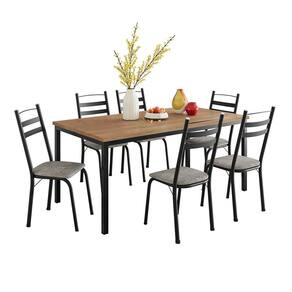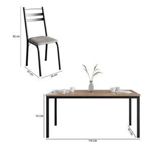 Conjunto de Mesa Retangular com Tampo de MDP Amadeirado e 6 Cadeiras Adriana III Revestimento Sintético Cinza Claro e Preto