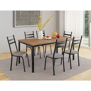 Que tal o Conjunto de Mesa Adriana?Fazer as refeições do dia a dia fica muito mais especial quando você tem um espaço aconchegante e bem estruturado para acompanhar, não é mesmo? O Conjunto Adriana é perfeito para garantir comodidade e charme na sua cozinha ou espaço de recepção, pois conta com 6 cadeiras que tem espuma no assento e encosto ergonômico + mesa retangular com tampo amplo para acomodar louças, copos e tudo o que for necessário para deixar o momento mais prático. O design clássico das peças traz uma estética confortável e fácil de agregar à decoração, permitindo que você crie um ambiente acolhedor e com a cara da sua família. Aí é só preparar aquela refeição deliciosa e aproveitar cada instante com quem você ama!