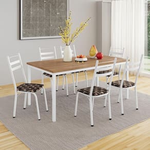 Que tal o Conjunto de Mesa Adriana?Fazer as refeições do dia a dia fica muito mais especial quando você tem um espaço aconchegante e bem estruturado para acompanhar, não é mesmo? O Conjunto Adriana é perfeito para garantir comodidade e charme na sua cozinha ou espaço de recepção, pois conta com 6 cadeiras que tem espuma no assento e encosto ergonômico + mesa retangular com tampo amplo para acomodar louças, copos e tudo o que for necessário para deixar o momento mais prático. O design clássico das peças traz uma estética confortável e fácil de agregar à decoração, permitindo que você crie um ambiente acolhedor e com a cara da sua família. Aí é só preparar aquela refeição deliciosa e aproveitar cada instante com quem você ama!