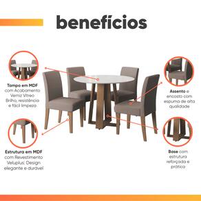 O conjunto de Mesa Athenas Redonda 1,03m 4 Cadeiras Trieste é perfeito para compor sua cozinha, sala de jantar ou área gourmet. A mesa possui acabamento em verniz Vitreo, que forma uma camada transparente de alta resistência que garante mais qualidade ao produto. O design dos pés da mesa em X facilita acomodar melhor as cadeiras no seu espaço. As cadeiras são revestidas em tecido Veloplus toque macio e confortável na cor Mascavo. Excelente para receber os amigos e familiares, tornando o momento ainda mais especial!