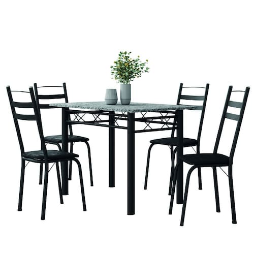 Conjunto De Mesa Sala de Jantar Com 4 Cadeiras Leia Tubular Granito 1,20m Artefamol - Preto