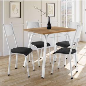 Conjunto De Mesa Sala De Jantar Lotus Com 4 Cadeiras Tampo Retangular Madeirado 91cm Branco/preto Branco/pre O Conjunto de Mesa Lótus com 4 lugares possui design moderno que se adapta a qualquer ambiente. Contém tampo retangular em BP resistente a riscos, manchas e umidade, e as cadeiras são revestidas em tecido sintético de fácil limpeza. Ainda conta com base da mesa e cadeiras em aço, garantindo resistência e durabilidade. MEDIDAS: Medidas da Mesa (Base + Tampo): [ A ] = 76 cm [ L ] = 68 cm [ P ] = 91 cm Medidas da Cadeira: [ A ] = 92 cm [ L ] = 34 cm [ P ] = 41 cm PESO MESA: 14,53 kg (Base + Tampo) PESO CADEIRA: 2,36 kg CADEIRAS SUPORTAM: 120 kg MESA SUPORTA: 40 kg Características MODELO: Conjunto de Mesa Lotus com 4 Cadeiras Liz Branco/Preto Artefamol MARCA: Artefamol COR: Branco/Preto TIPO DE PINTURA: Epóxi ACABAMENTO: Liso MATERIAL: Base e Cadeira de Aço ESPESSURA DO TAMPO: 5 cm QUANTIDADE DE CADEIRAS: 4 DENSIDADE DA ESPUMA DA CADEIRA: D10 TAMPO MESA: MDP TECIDO CADEIRA: Sintético PÉS: Sapatas de Plástico ITENS INCLUSOS: 1 Base, 1 Tampo e 4 Cadeiras GARANTIA: 3 Meses