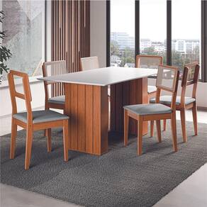 MODELO: Conjunto de Mesa Sala de Jantar Ripada 1,60m 6 Cadeiras Santiago